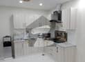 Modern kitchen with appliances (fridge, microwave, utensils)