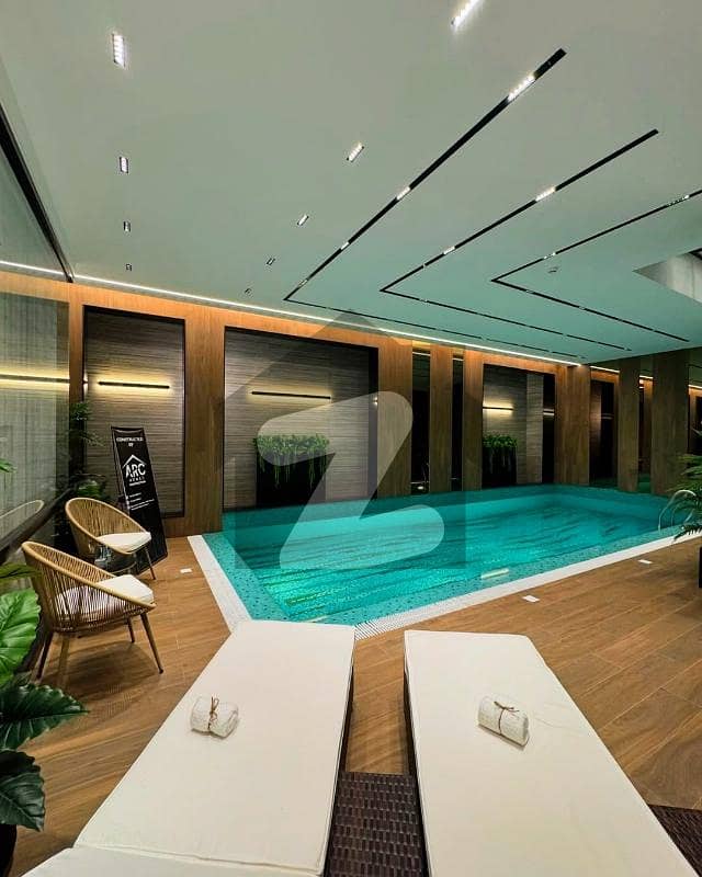 Majestic Swimming Pool large, beautifully designed with sparkling blue water, LED lighting, and a private sitting area. Perfect for relaxing evenings or hosting luxurious poolside gatherings