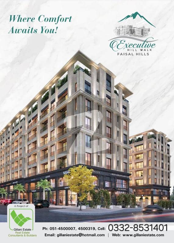 Experience the perfect blend of elegance, comfort, and prime location with Executive Hill Walk an exclusive project by Gillani Estate & Builders, designed for those who aspire to live above the ordinary.