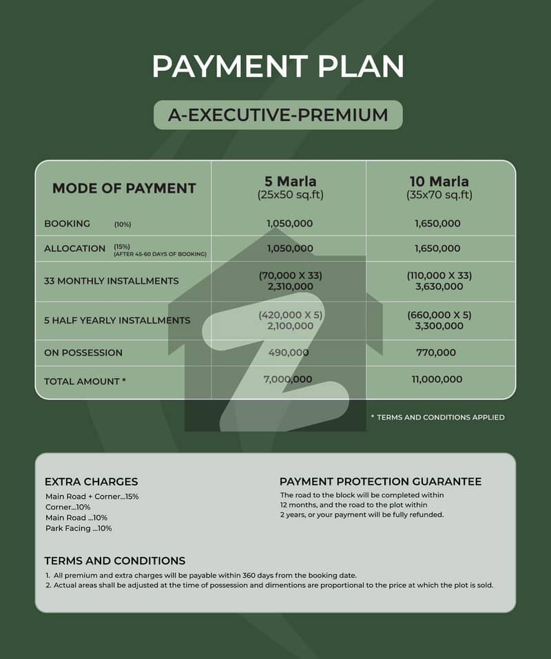 A premium 5Marla plot is available in the Executive Premium block on an easy and flexible payment plan.