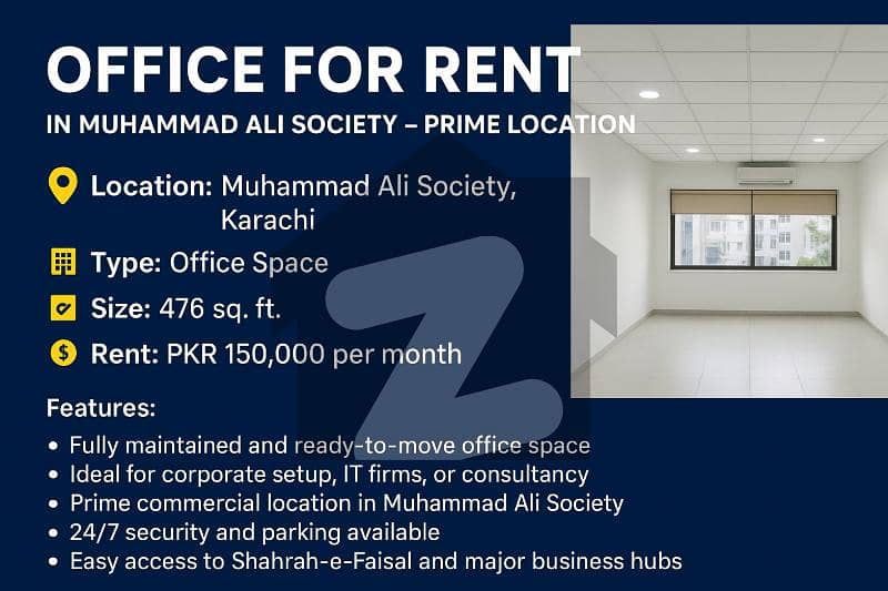 Office for Rent in Muhammad Ali Society Prime Location