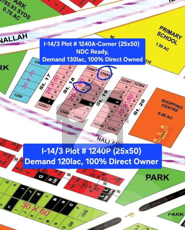 *I-14/3 Plot # 1240A-Corner (25x50) possession letter Demand 130lac, NDC Ready, 100% Direct Owner