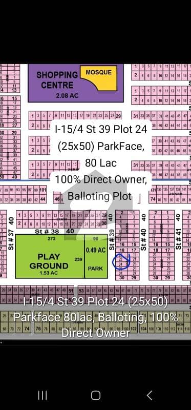 I-15/4 St 39 Plot 24 (25x50) Park Face, Balloting, 80Lac, Electricity , 100% Direct Owner
