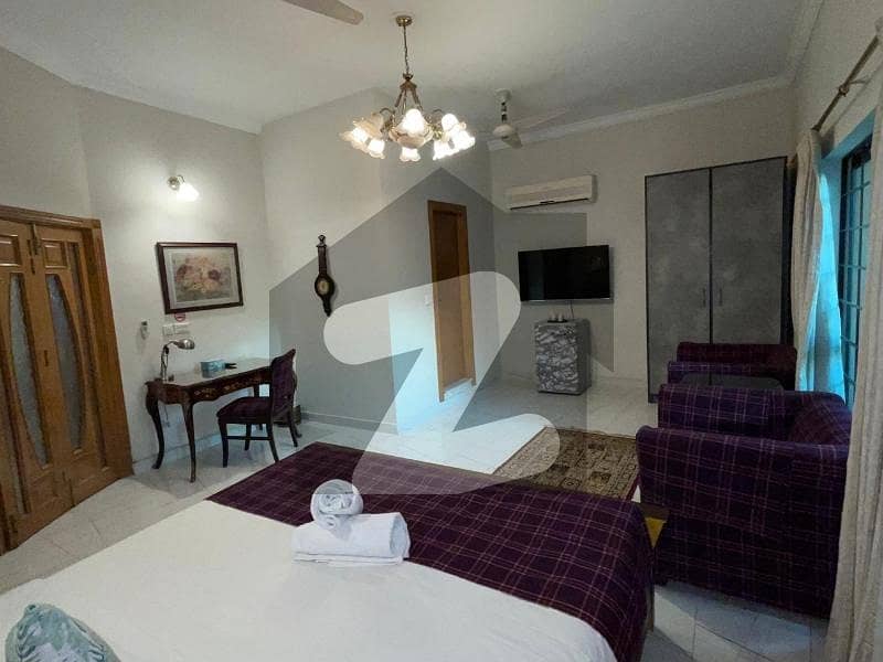 F. 8, Islamabad a fully furnished luxury house size (1200) Square yards 20 luxury top class furnished rooms huge car parking, 60 KV solar system installed outstanding location suitable for guest house executive of multinational companies for visit and more information please ,