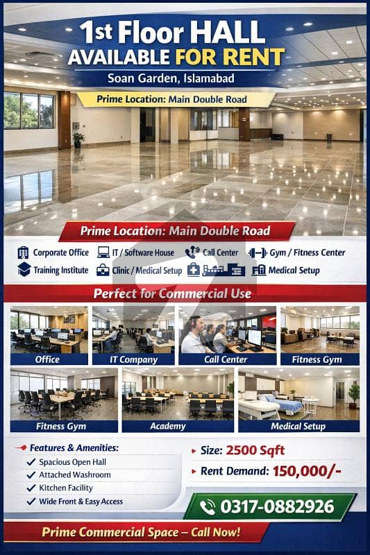 1st Floor Hall Available for Rent Soan Garden Islamabad