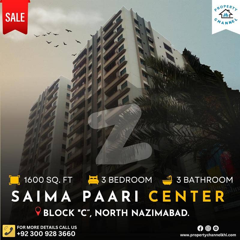 1600 Square Feet 3 Bedrooms Attached Bath Drawing Attached Bath Lounge Three Lifts Standby Generator Reserved Car Parking Prime Location SAIMA PAARI CENTRE Block C North Nazimabad.
