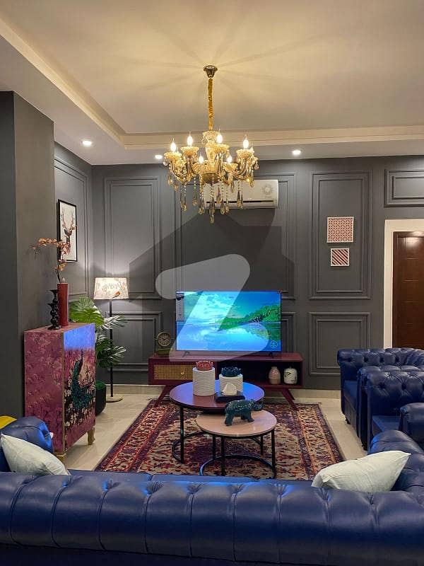 A beautifully designed 2 bedroom fully furnished apartment located in the heart of the behria town phase 7The apartment is situated in a modern building equipped with a high-speed elevator facility. The lift operates on a secure card access system, ensuring safety and privacy for residents. The apartment features a stylish bedroom, comfortable living area, fully equipped kitchen, and a neat washroom. Ideal for families and business stays, offering a secure and prime location with all essential amenities nearby.
