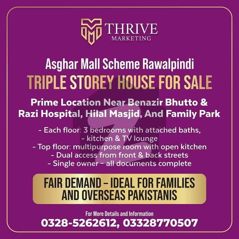 *Dream Home Alert! Triple-Storey House for Sale in Asghar Mall Scheme, Rawalpindi*