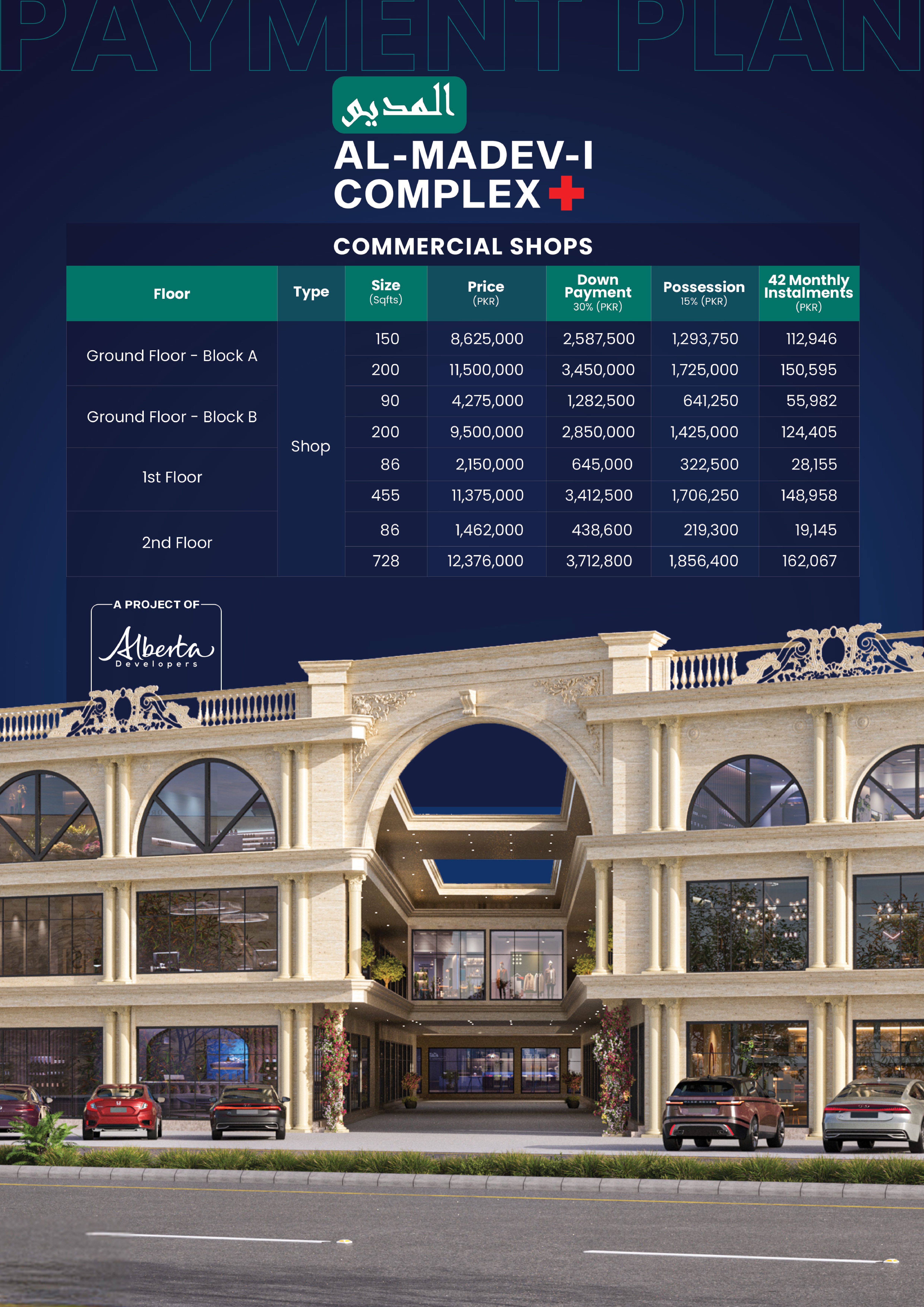 Al-Madev Complex-I is designed to meet the needs of both investors and business owners looking for a strategic commercial presence:
