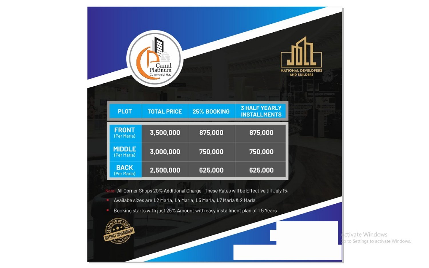 With the increased demand for commercial space in the industrial metropolis of Faisalabad, few developments have been able to grab the attention of the buyer market, and Canal Platinum Commercial Hub is among them. The project provides an excellent opportunity for the business community looking to avail excellent returns on investments in the city's most accessible location.