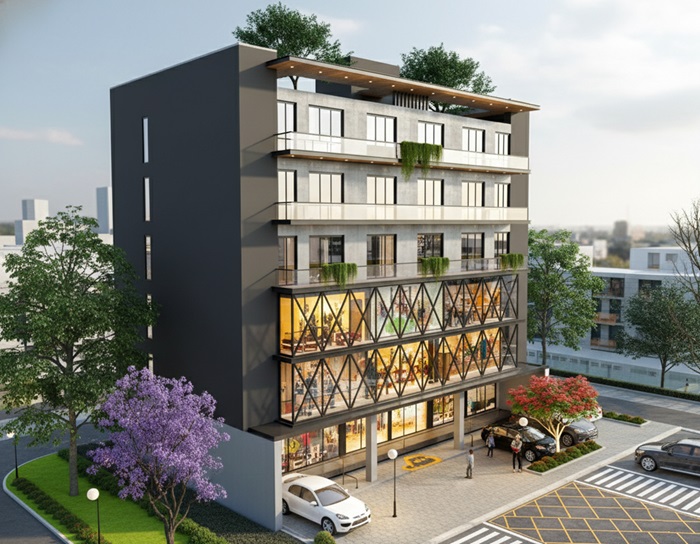 - Structure: LG + GF + 5 Floors (7-storey building)