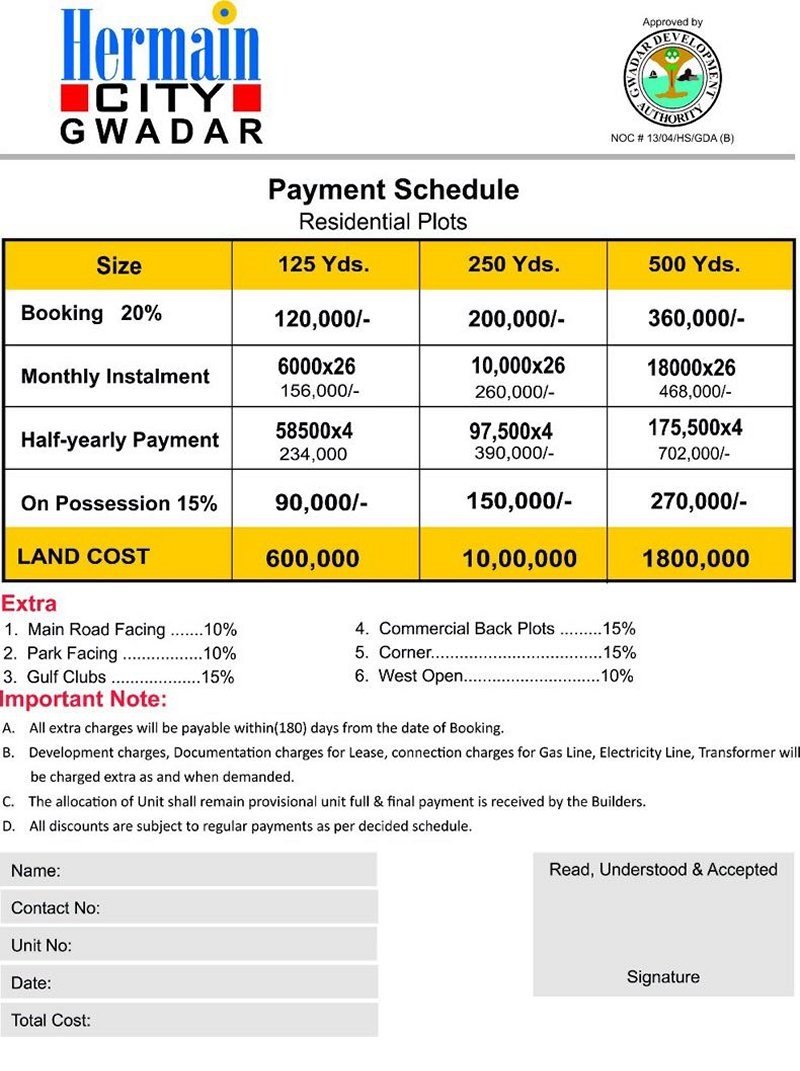 Hermain City is a new project in Gwadar by Chamrock Builders and Developers. In 2002, Gwadar Port project to build a large deep-sea port was begun in the town. The government of Pakistan intends to develop the entire area in order to reduce reliance on Karachi for shipping. In addition to expanding port facilities, the project aims to build industrial complexes in the area and to connect the town via a modern highway to the rest of Pakistan. The People’s Republic of China is providing help on the project, and the first phase was completed by the end of 2004.