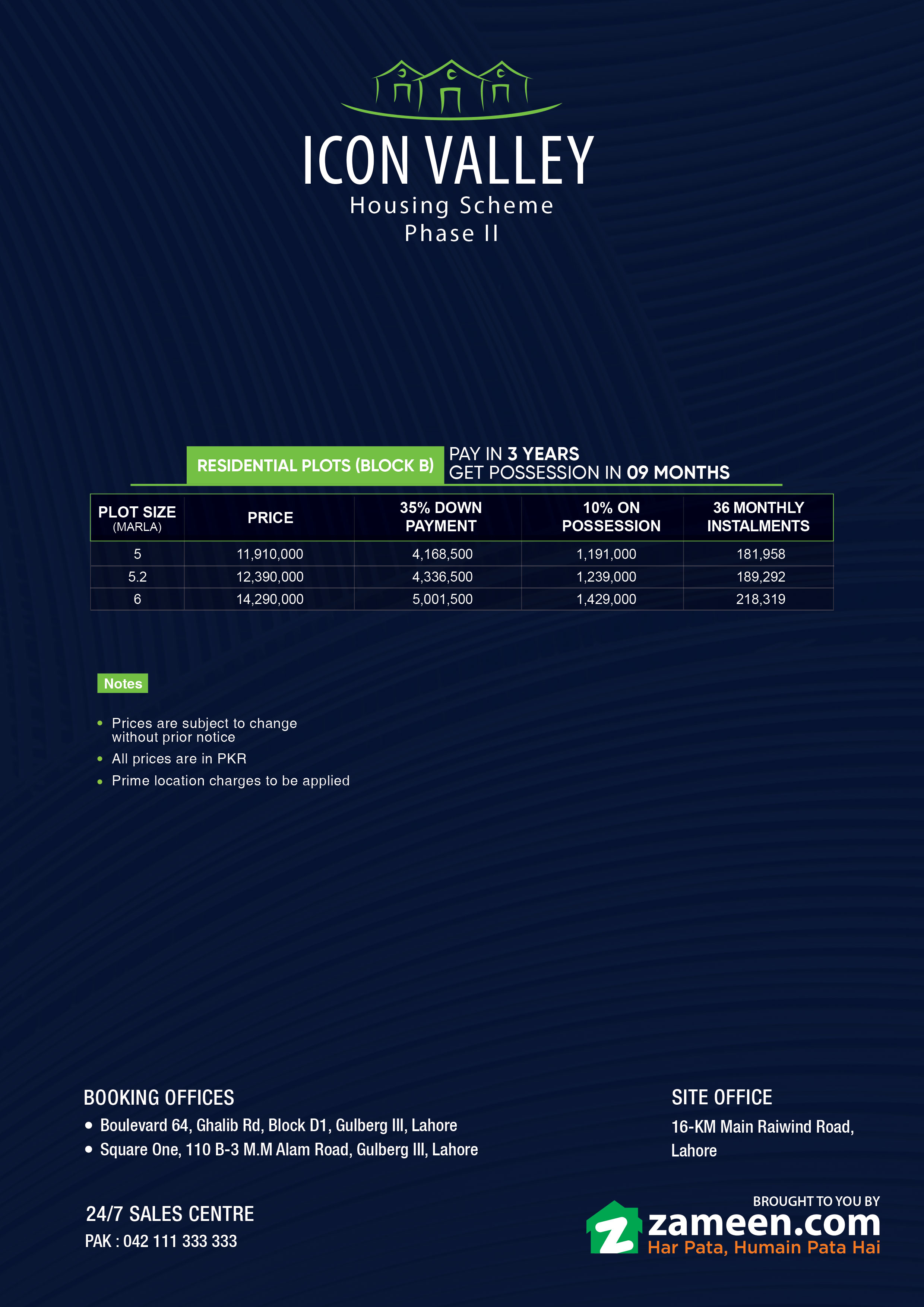 - Icon Valley Phase 2 has Pakistan’s No.1 property website — Zameen.com — as its marketing and sales partner, which further adds to the project’s trustworthiness.