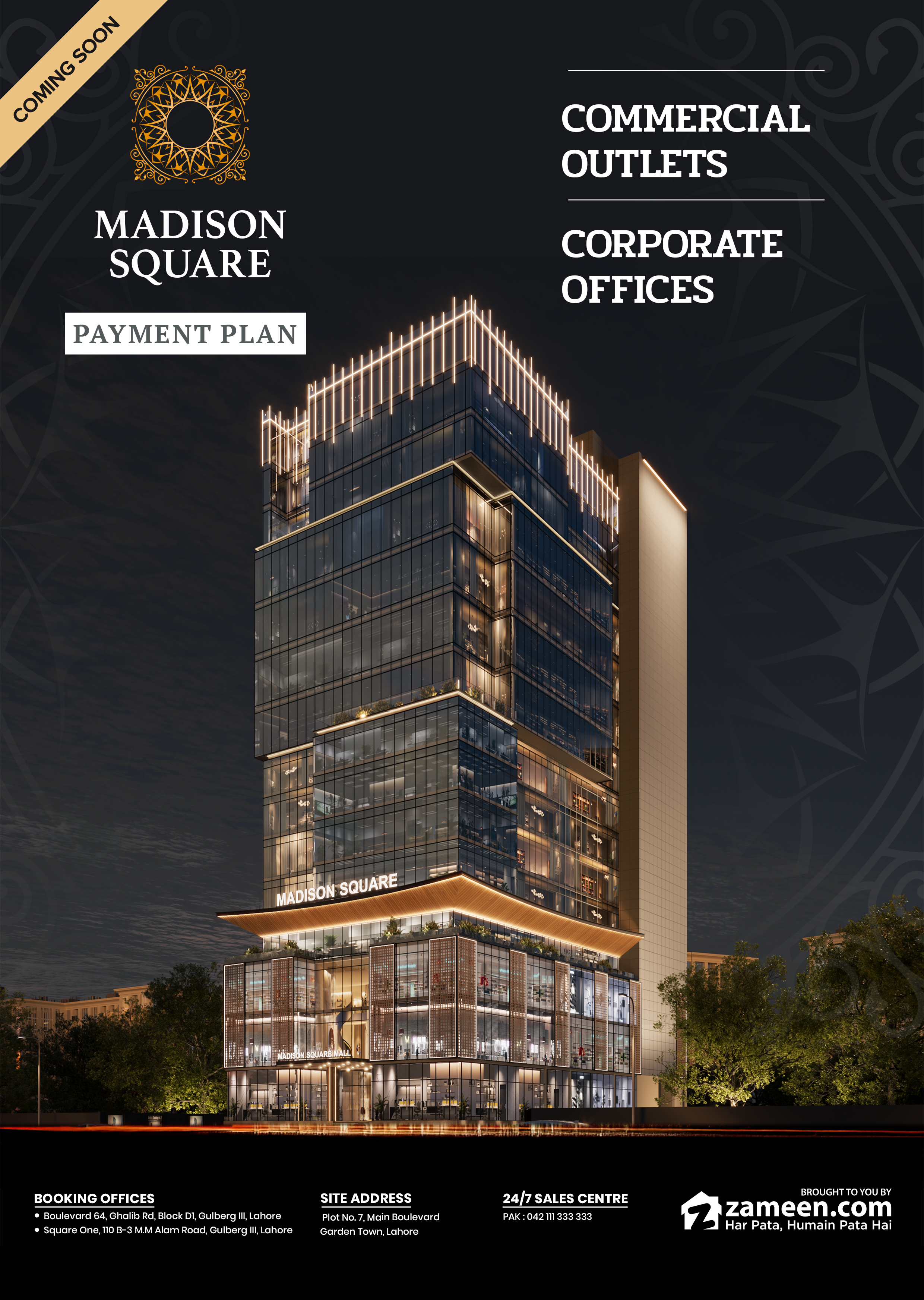 Madison Square is a landmark high-rise development that sets a new standard for corporate and commercial spaces in Lahore. Strategically located at Plot No. 07, Main Boulevard, Garden Town, Lahore. This project, by Maqen Developers, the team behind Madison Square Mall, combines modern architecture, premium utilities, and a dynamic mix of retail and office spaces. It offers businesses and investors an exceptional opportunity to thrive in one of Lahore’s most sought-after neighborhoods.