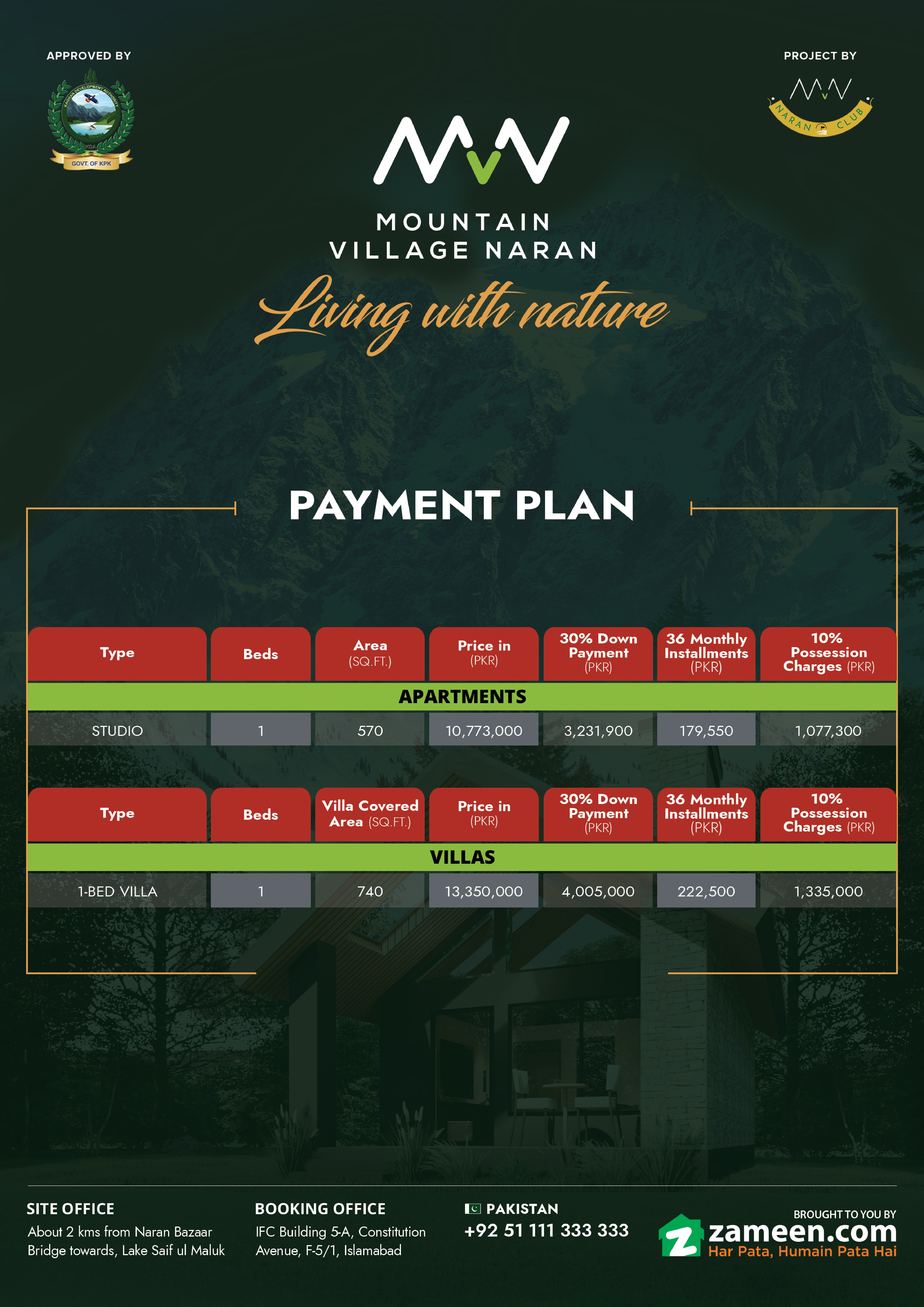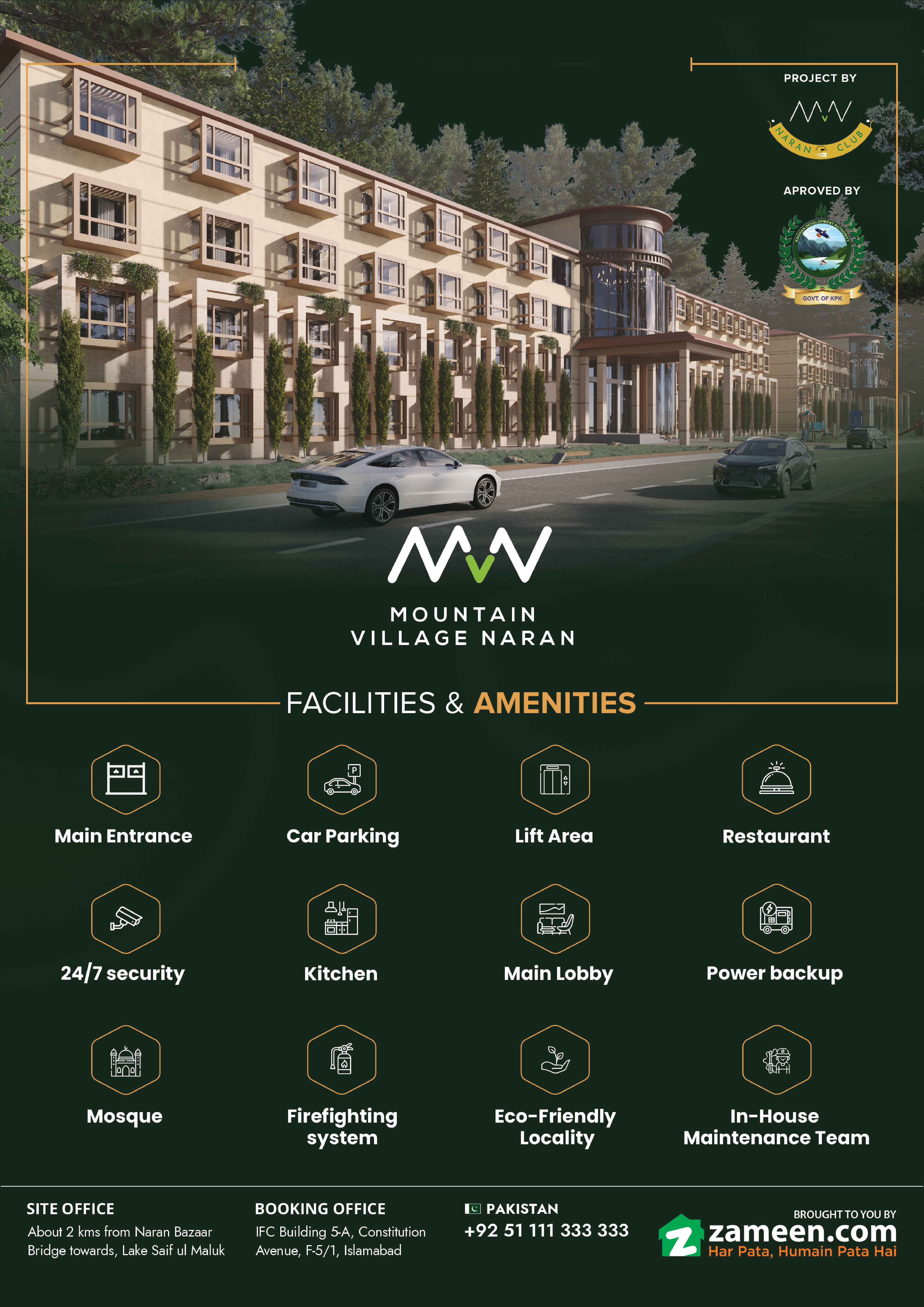 Mountain Village Naran is an upscale residential development nestled within the magnificent mountains, beautiful freshwater streams, and flourishing green spaces of Naran. Strategically positioned at this popular tourist destination, the project is envisioned to meet the popular trend of having a second home in the mountains.