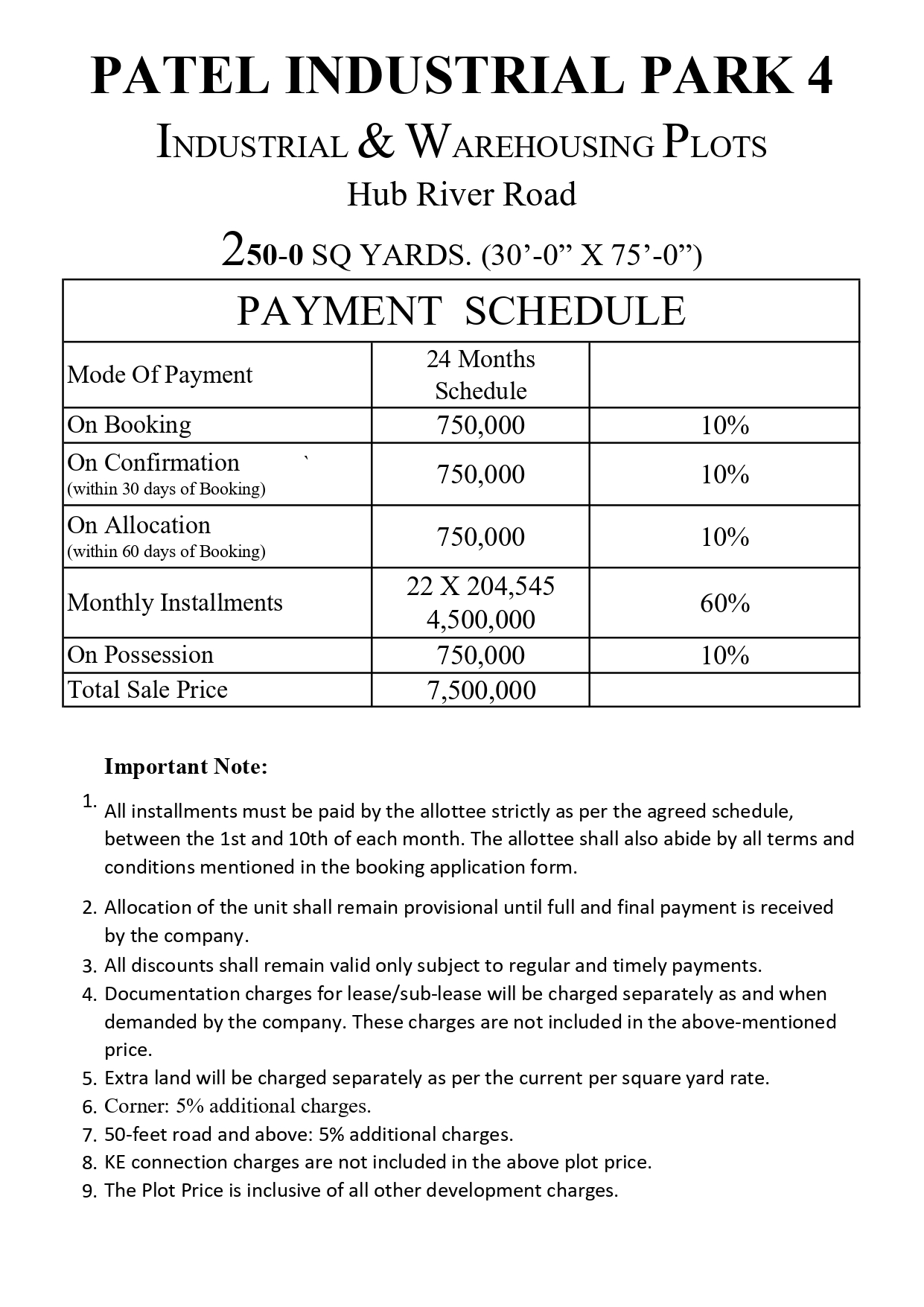 Patel Industrial Park IV offers a rare opportunity to own industrial land in Karachi with competitive pricing and strong growth potential: