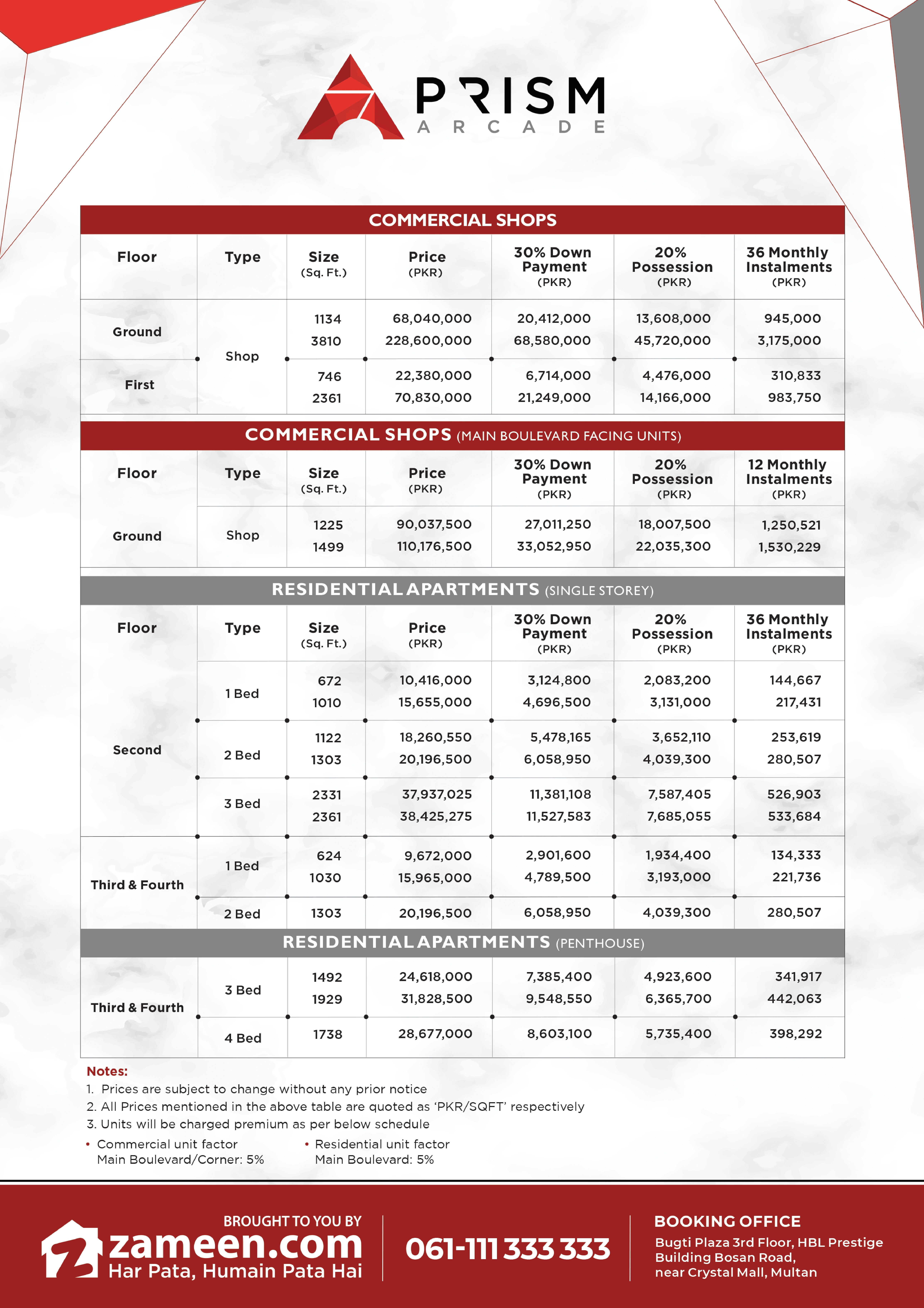 - Backed by an experienced developer Prism Builders & Developers bring proven credibility and experience to the project, having delivered multiple successful ventures in Multan.