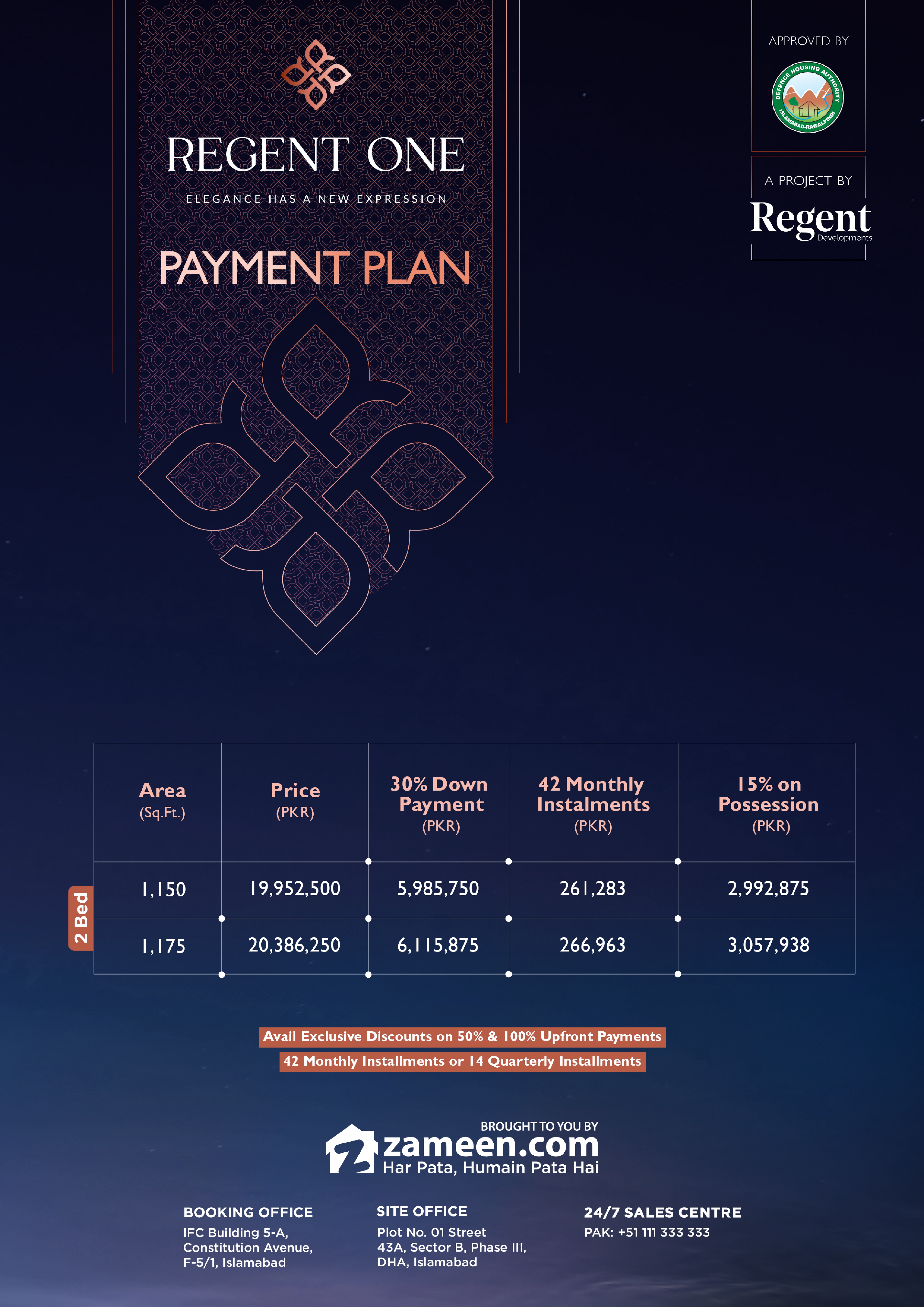 - Developed by credible Regent Developers, known for delivering multiple successful projects in DHA Islamabad