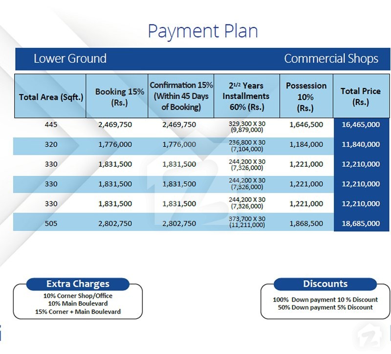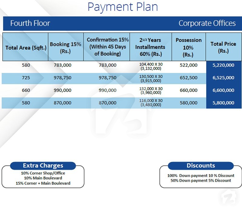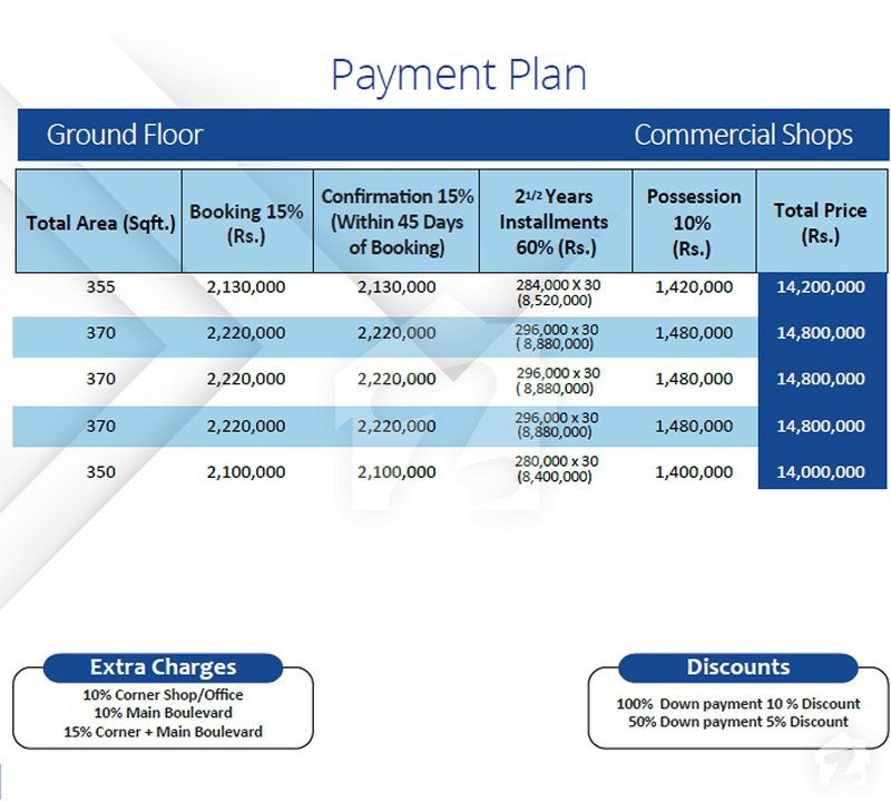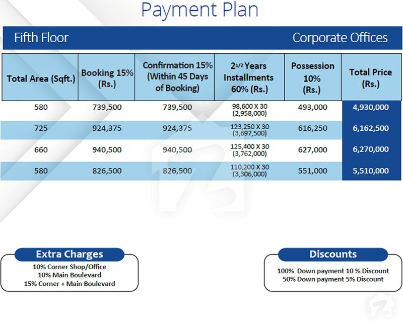 Royal Corporate Center is one of the best new commercial & retail projects of Islamabad due to the modern planning and hot location. Royal Corporate Center has state of the art planning, lifts, parking space, firefighting system, wide corridors, earthquake resilient structure, and WIFI connections. Royal Corporate Center offers all the top modern amenities that are required for business activities in Islamabad. Offices and shops in Royal Corporate Center have elegant interiors.