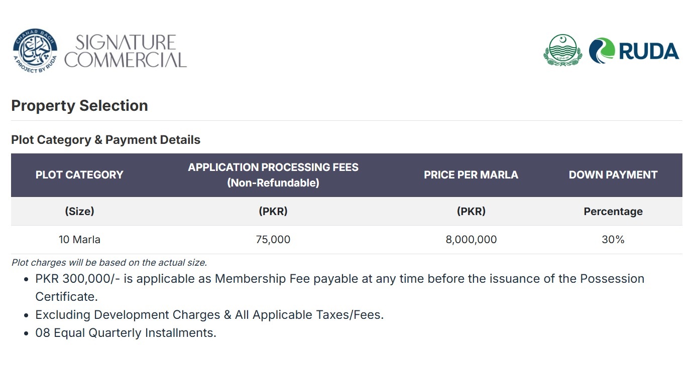- A limited number of 10 Marla commercial plots