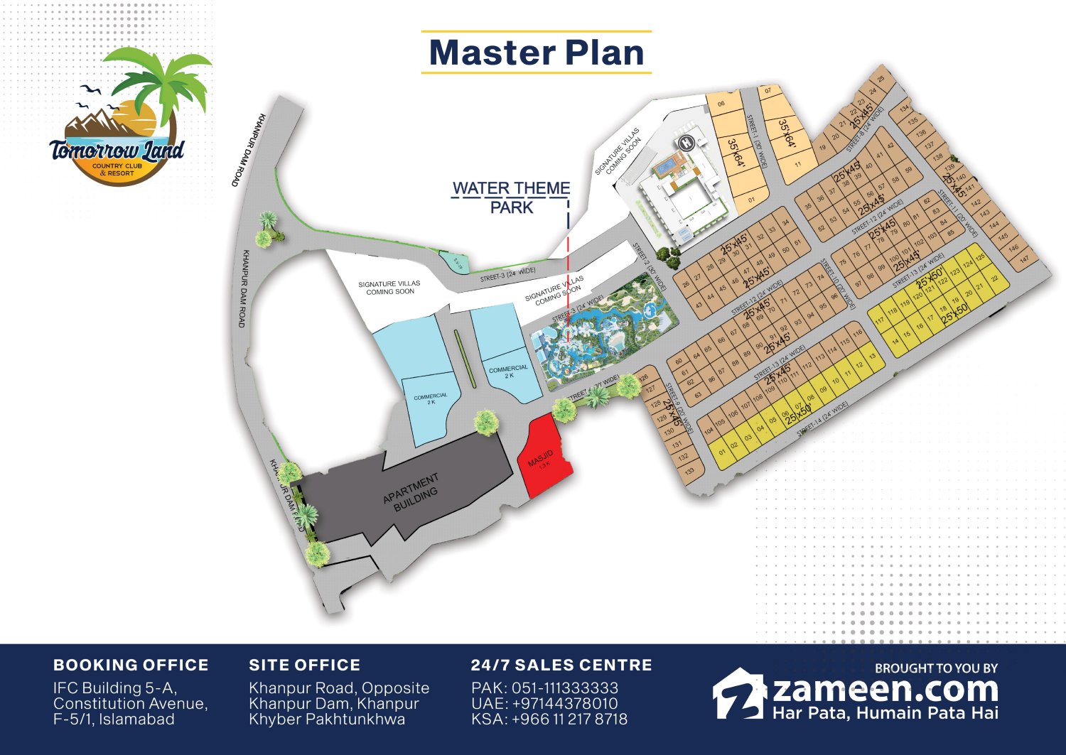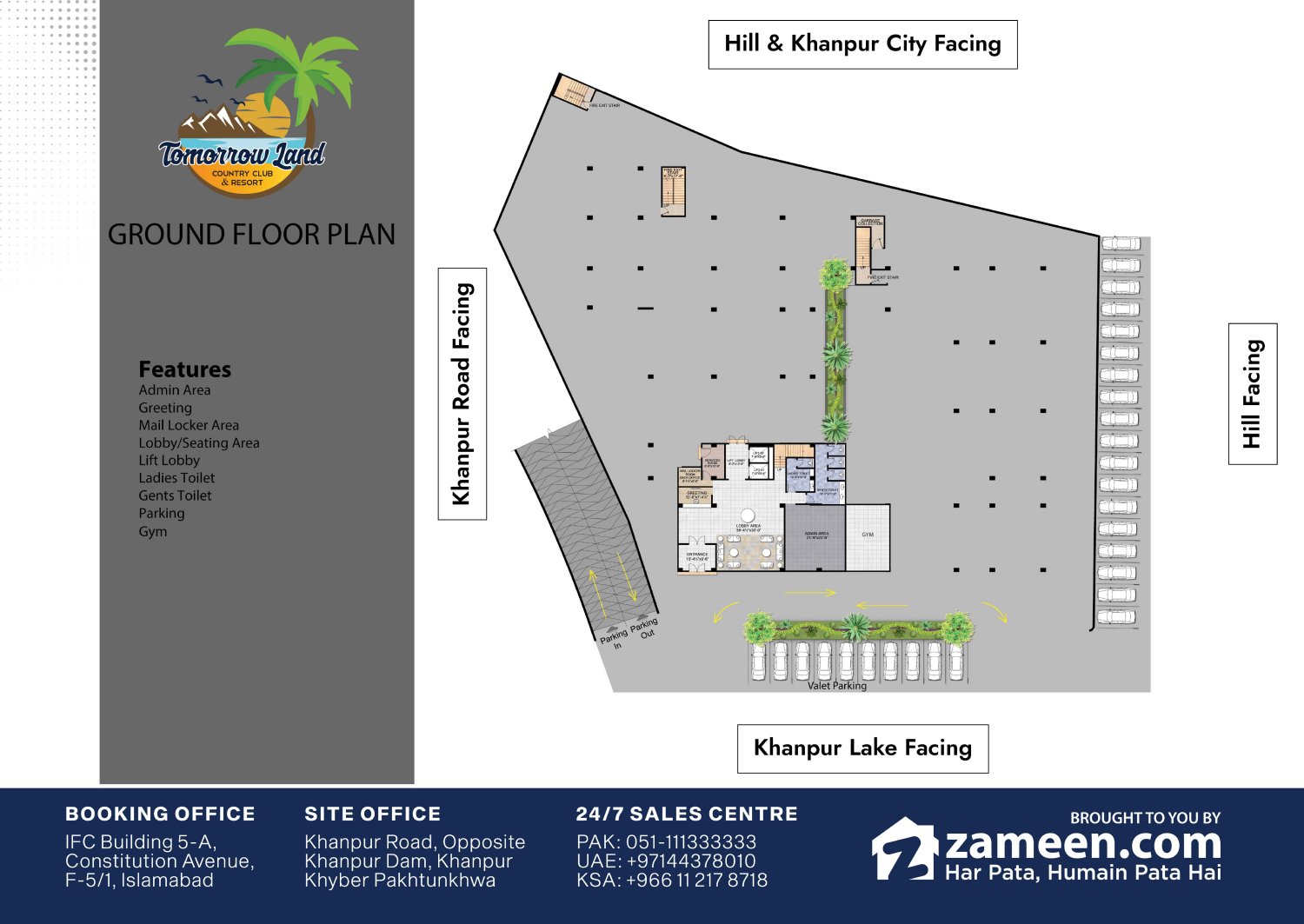 Tomorrow Land Country Club & Resort, a project of Tomorrow Land developers, is a first of its kind tourism-oriented construction project located in Khanpur. The project is here to capitalise on the rising market of tourism with its beautifully designed hotel apartments built right in front of the Khanpur Dam. This gives the project a unique advantage of over all such developments and will ensure great benefits for buyers and investors of all sorts.