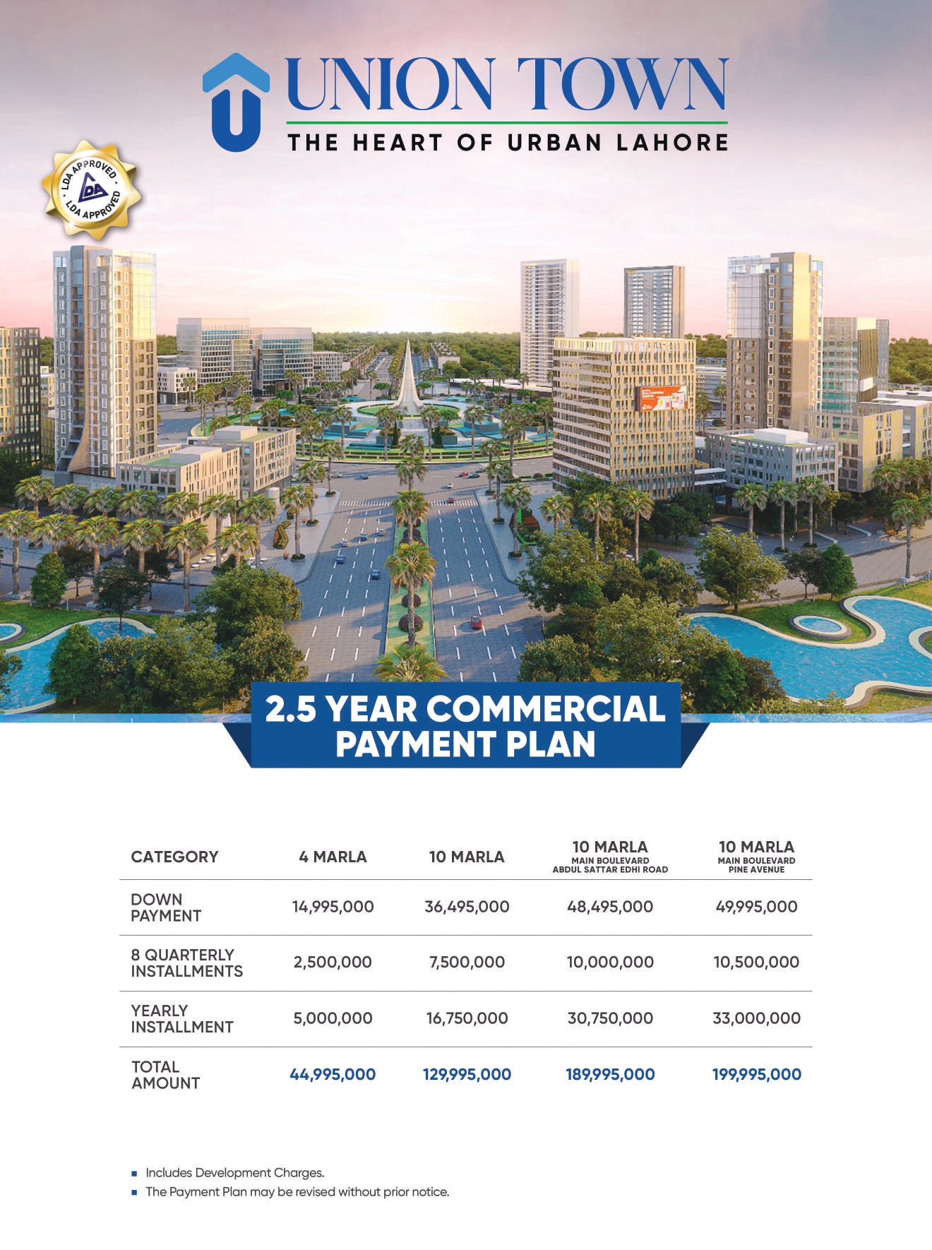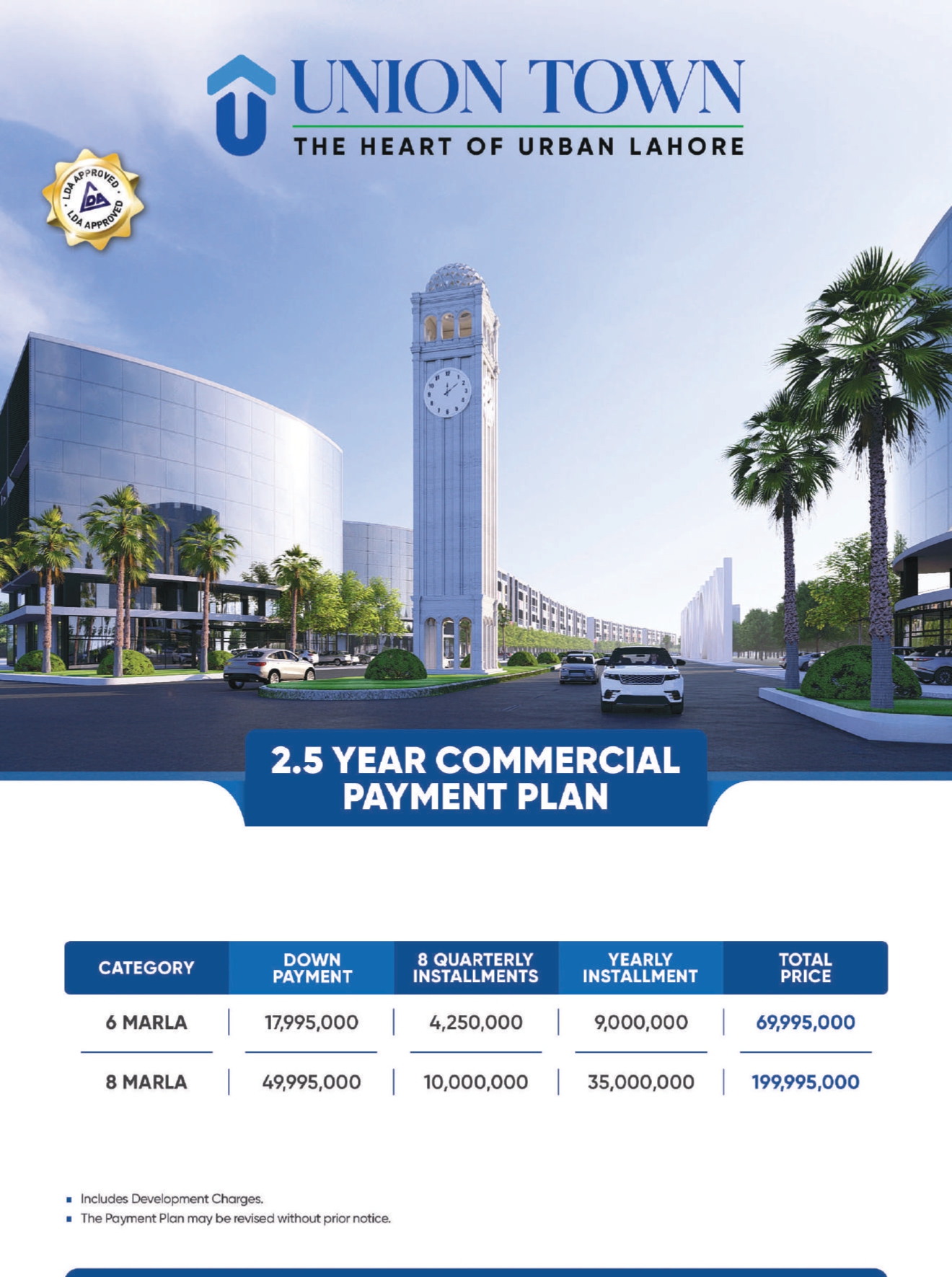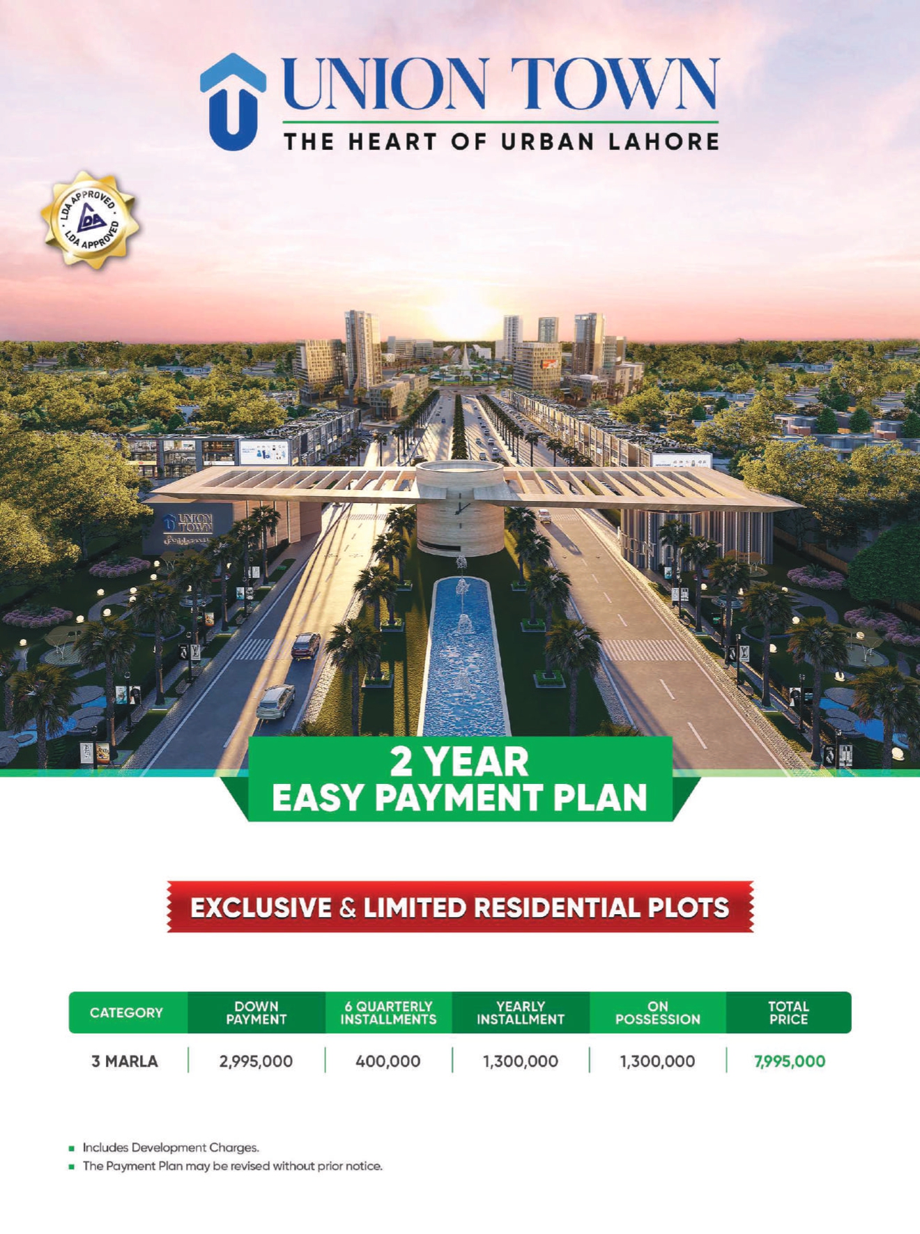 Union Town by Union Developers is a thoughtfully designed, LDA-approved community where families, businesses, and investors can experience modern city living at its best. Spread over a prime stretch of land, the community combines top-class infrastructure with well-planned amenities. With residential and commercial plots available on easy installment plans, Union Town offers not just property, but a secure and connected lifestyle for all.
