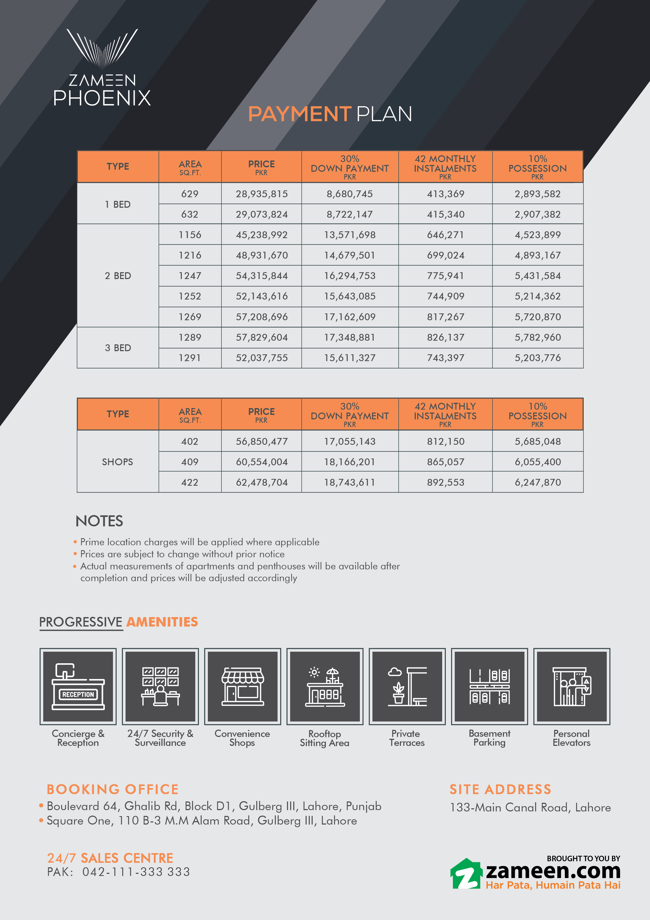 Zameen Phoenix is destined to become one of the most recognisable landmarks in the City of Gardens. Some of the project’s most promising investment opportunities are listed below:
