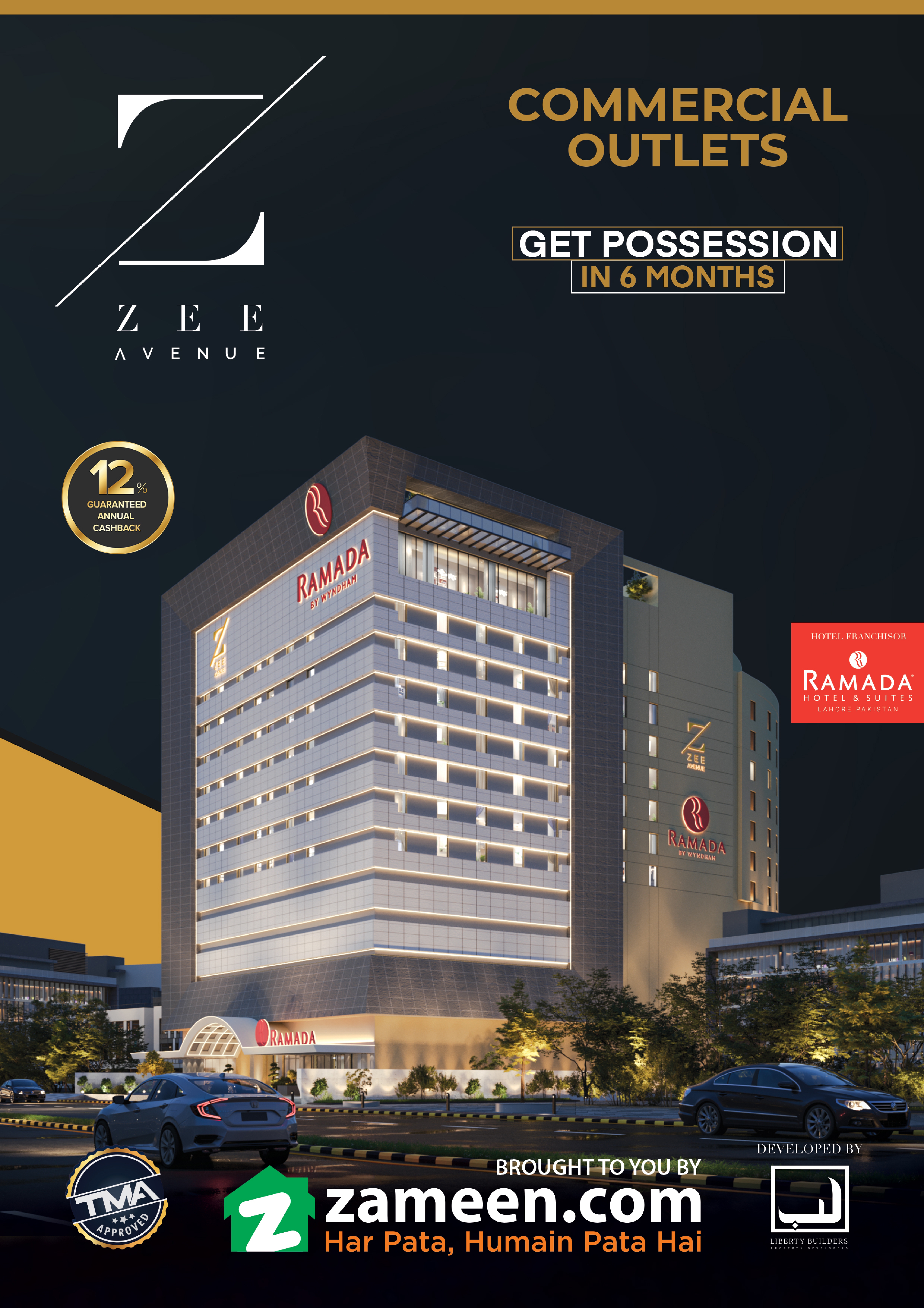 Zee Avenue offers a great mall with all the brands you could ask for and a food court with some great eateries. To top it off, the project includes Ramada Hotel & Suites, blending tradition, comfort, style, and convenience. It also has a rooftop with beautiful views of the whole city, complete with a restaurant, gym, spa facilities, and even a helipad.