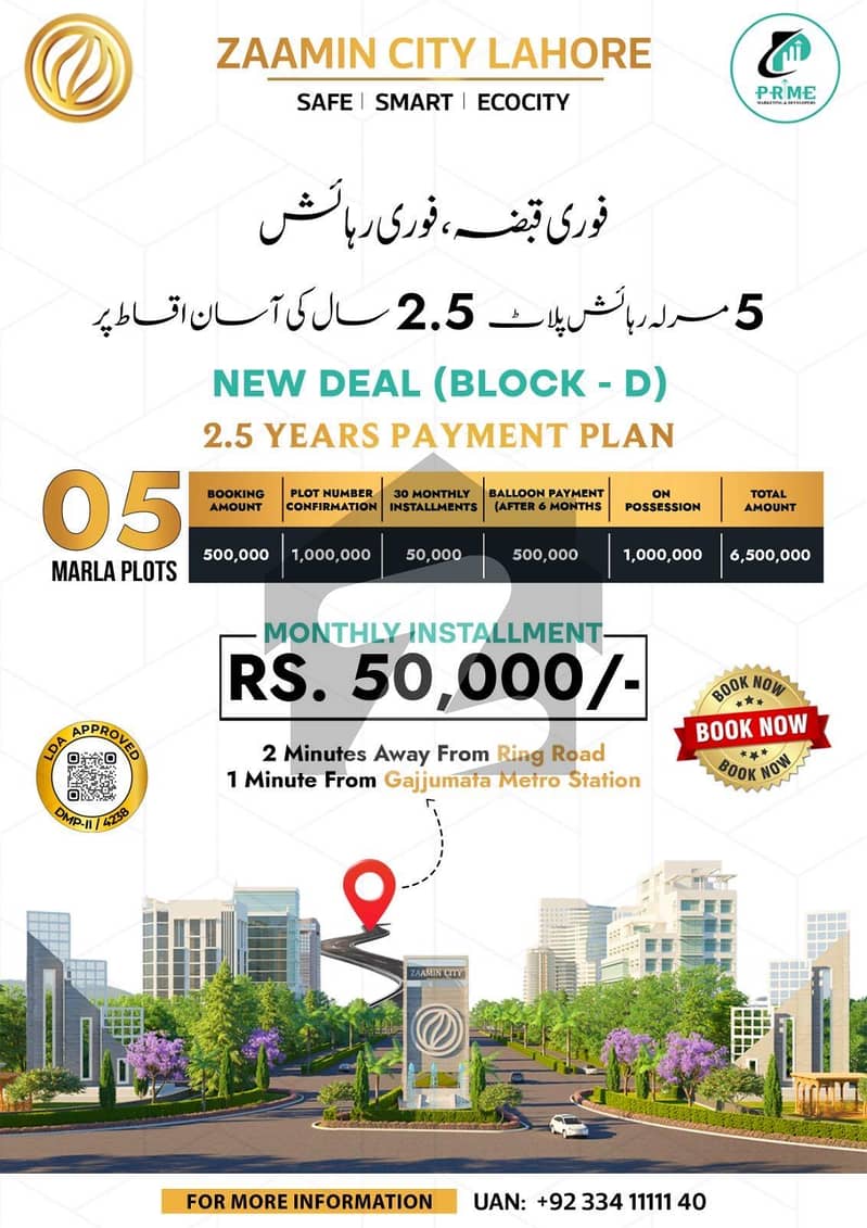 ضامن سٹی فیروزپور روڈ,لاہور میں 5 مرلہ رہائشی پلاٹ 65.0 لاکھ میں برائے فروخت۔