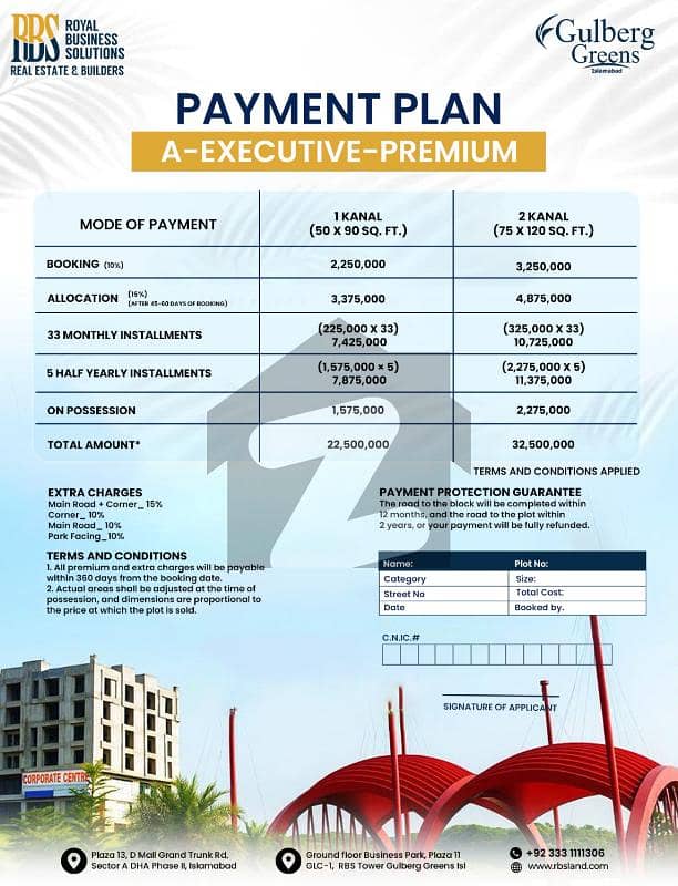 Invest with 100% confidence in the most prestigious new block of Gulberg Islamabad. We are offering a prime 1 Kanal (50x90) residential plot in A-Executive