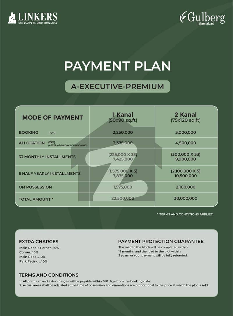 Own a 2 kanal A-Executive Premium plot in Gulberg Islamabad with a flexible 3-year payment plan.
