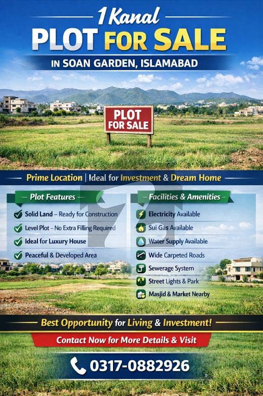 سوان گارڈن اسلام آباد میں 1 کنال رہائشی پلاٹ 3.2 کروڑ میں برائے فروخت۔
