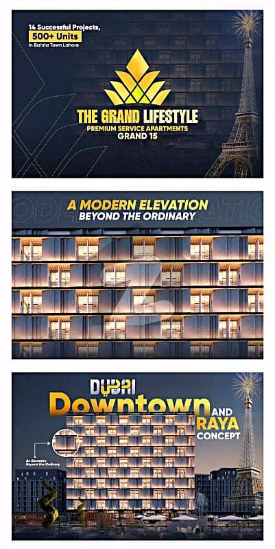 Discover Grand Lifestyle Grand 15, an iconic development by Landmark Developers, located in Bahria Downtown, DHA Raya Concept, offering breathtaking views of lush parks, dazzling fountains, and the majestic Eiffel Tower. This premium project sets a new standard for luxury living and investment.
