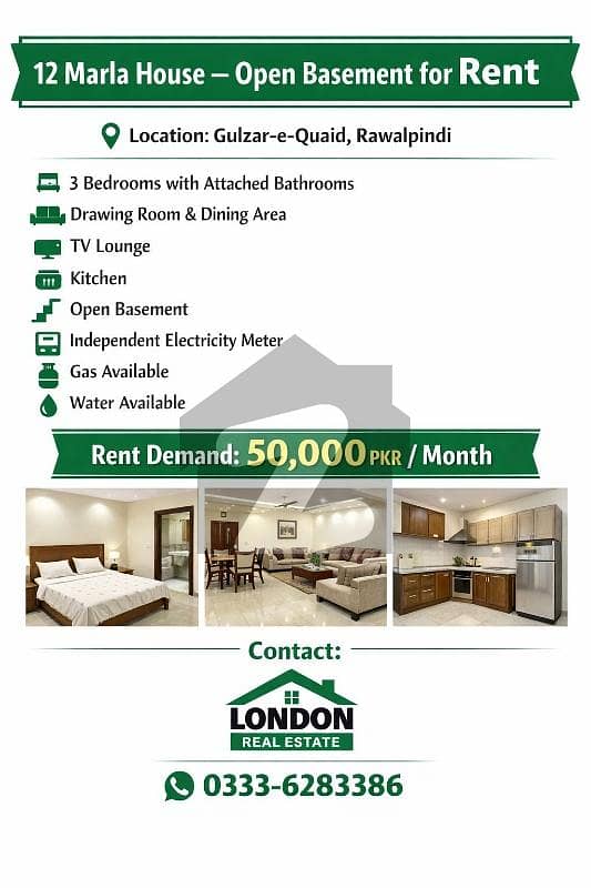 گلزارِ قائد ہاؤسنگ سوسائٹی راولپنڈی میں 3 کمروں کا 12 مرلہ زیریں پورشن 50.0 ہزار میں کرایہ پر دستیاب ہے۔
